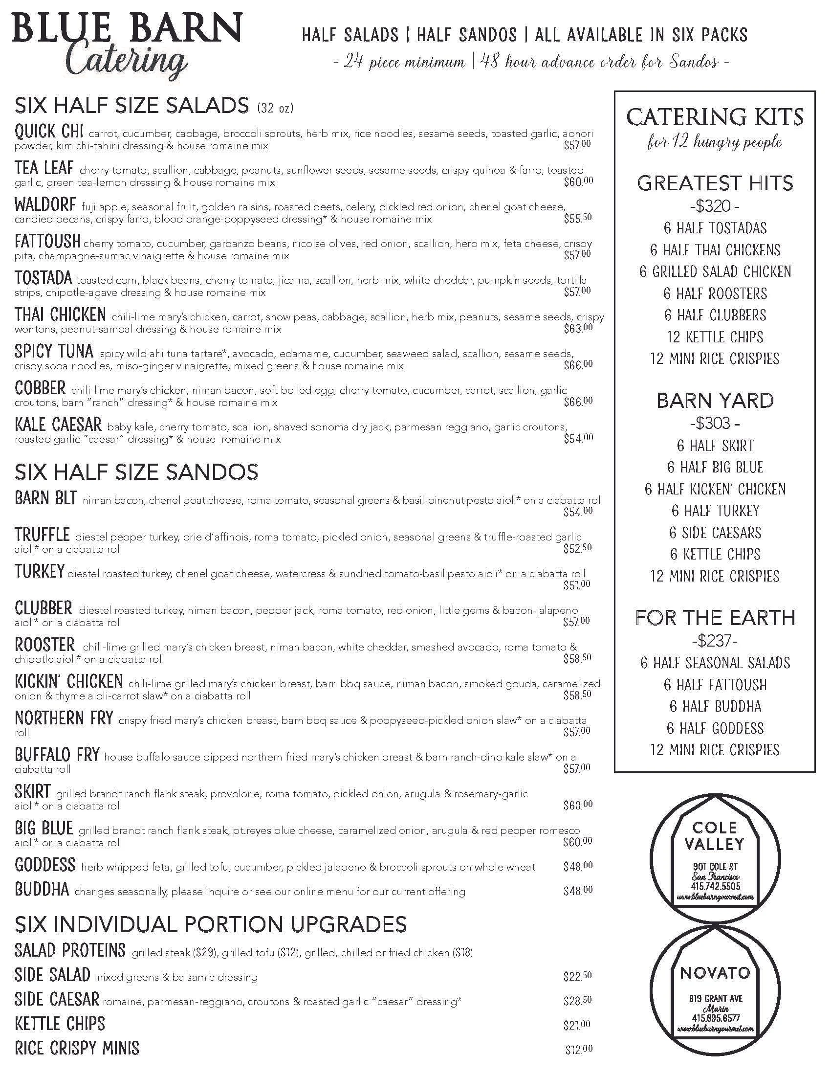 MARIN: 415.896.6577/novatocatering@bluebarngourmet.com